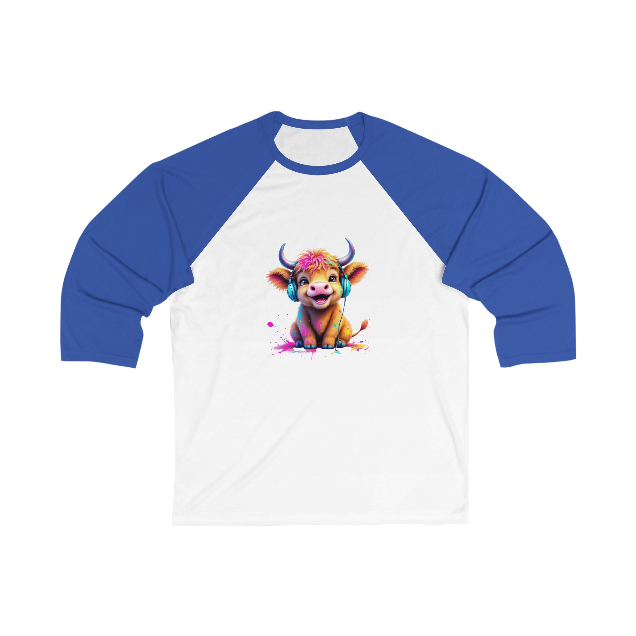 Whimsical Cow Baseball Tee, Cute Unisex 3/4 Sleeve Shirt, Animal Lover Gift, Fun Casual Wear, Perfect for Occasions