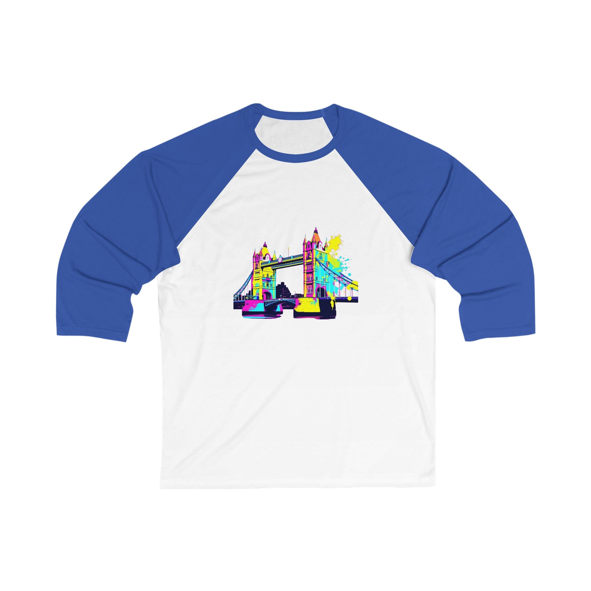 Colorful London Bridge Baseball Tee, Unisex Casual Top, Gift for Travelers, Unique Streetwear, Summer Outfit, Stylish Graphic Tee