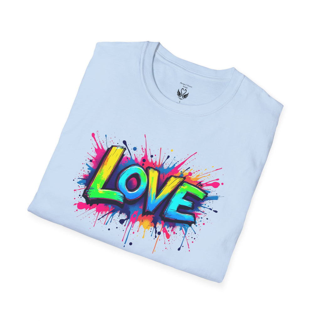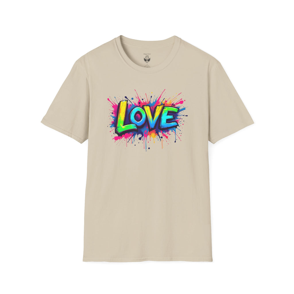 This unisex t-shirt radiates a vibrant, feel-good vibe, perfect for expressing love and positivity. Crafted from lightweight, 100% ring-spun cotton, it offers unparalleled comfort, making it an ideal choice for daily wear or special occasions. The bold, colorful "Love" design adds a playful touch that can brighten anyone's wardrobe. Perfect for casual outings, music festivals, or gifting to friends and family, this t-shirt is relevant for celebrations like Valentine’s Day, anniversaries, and Pride Month. It embodies a spirited energy, effortlessly matching with jeans, shorts, or skirts, allowing you to showcase your unique style with ease.