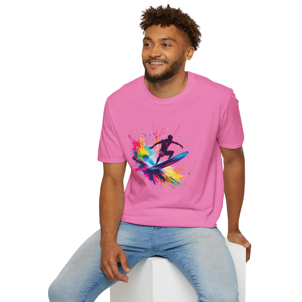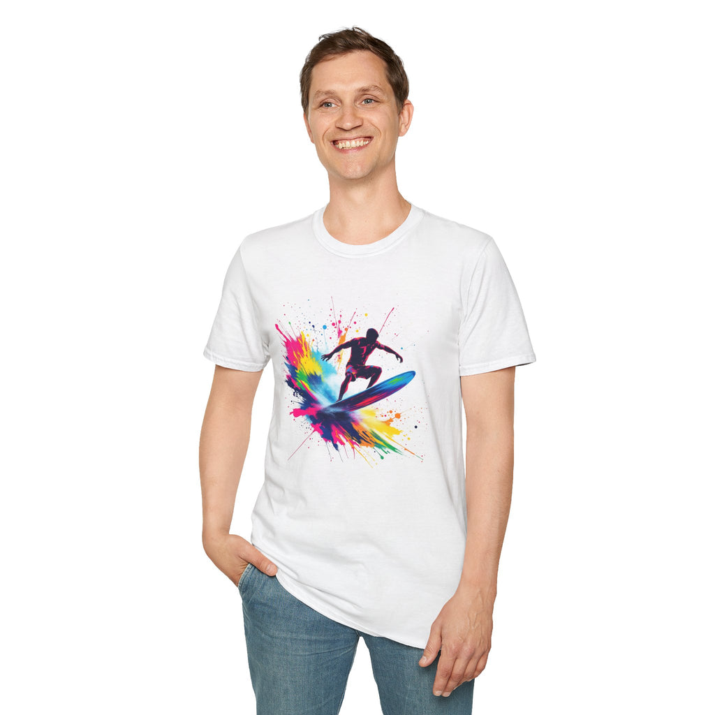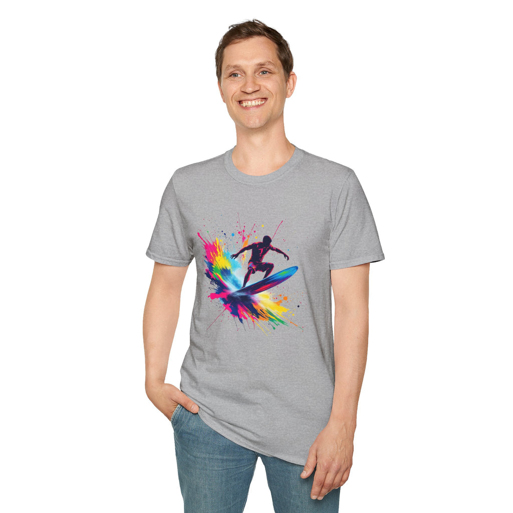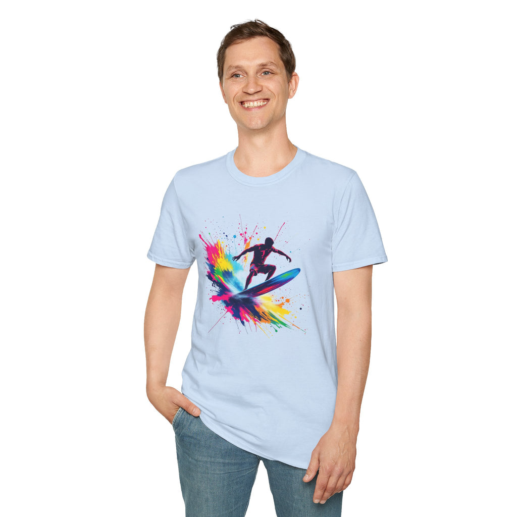 Experience effortless style with this trendy Unisex Softstyle T-Shirt. Crafted from lightweight, ring-spun cotton, it offers unparalleled comfort, making it perfect for wearing year-round. The vibrant print captures a surfer in action, adding a splash of color to your wardrobe. Ideal for beach lovers, sports enthusiasts, or anyone looking to brighten up their casual outfits. This t-shirt is also great for summer gatherings, beach parties, and outdoor festivals. Celebrate life's adventures with this versatile tee, which effortlessly fits into both laid-back and semi-formal occasions!