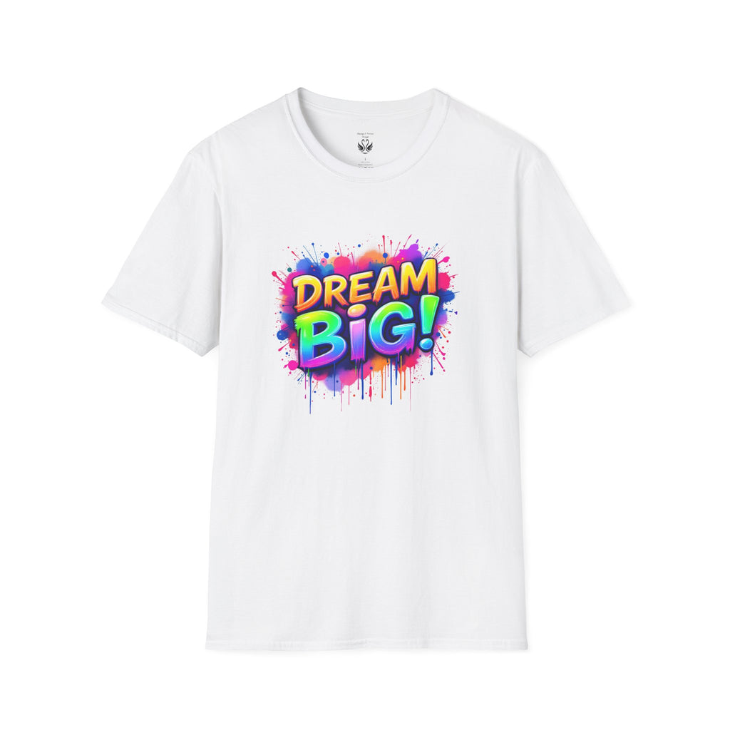 Introducing a vibrant unisex softstyle t-shirt that radiates positivity and inspiration. Featuring the bold phrase 'Dream Big!' against a colorful background, this shirt encourages wearers to embrace their ambitions. Its lightweight, breathable fabric makes it perfect for year-round wear, providing a comfortable fit whether you're lounging at home, heading to a casual outing, or attending a festive celebration. Ideal for students, young professionals, or anyone with a creative spirit, this t-shirt is a wonderful gift for birthdays, graduations, or any occasion where dreams are celebrated. Wear it to express your individuality and motivation, spreading joy and encouragement wherever you go!