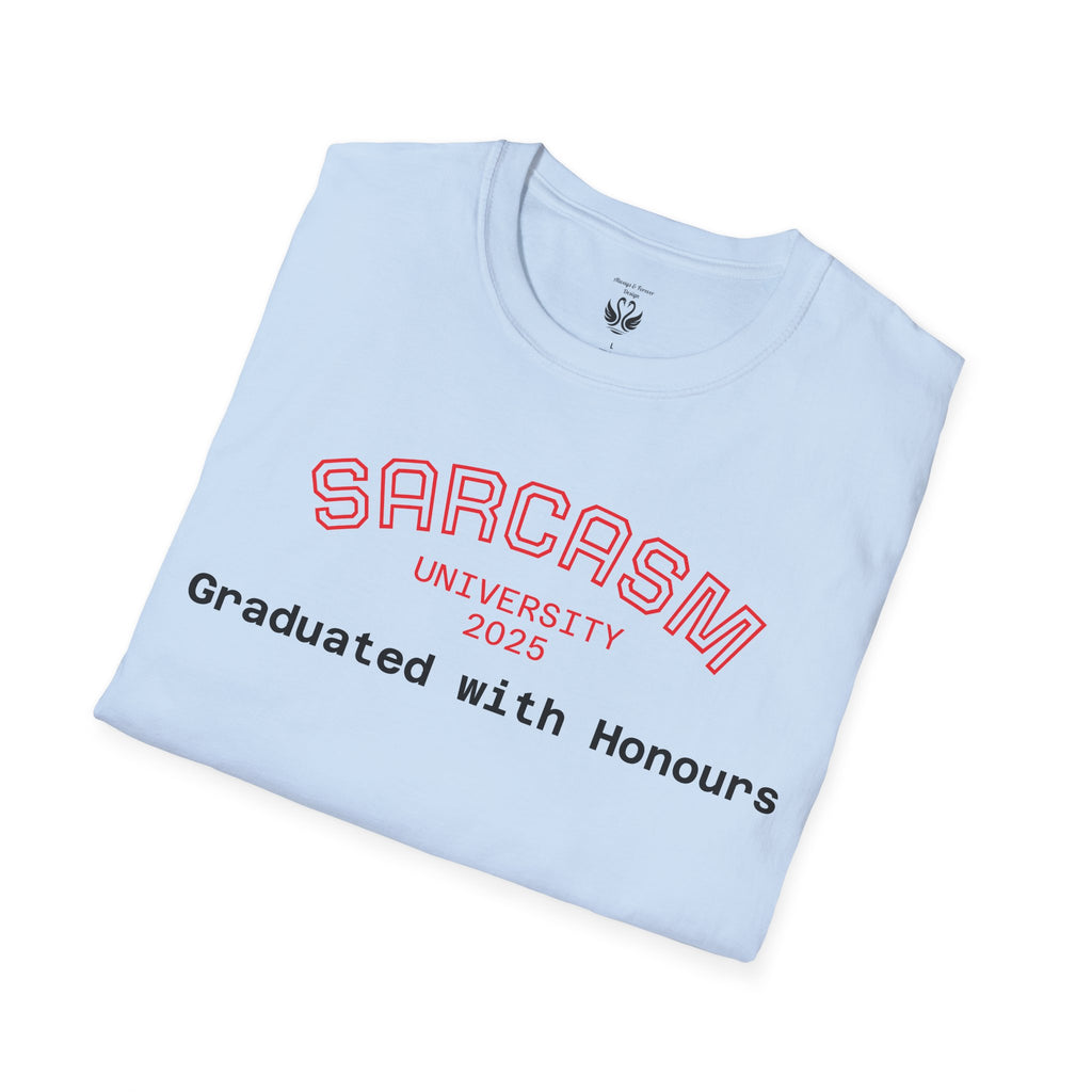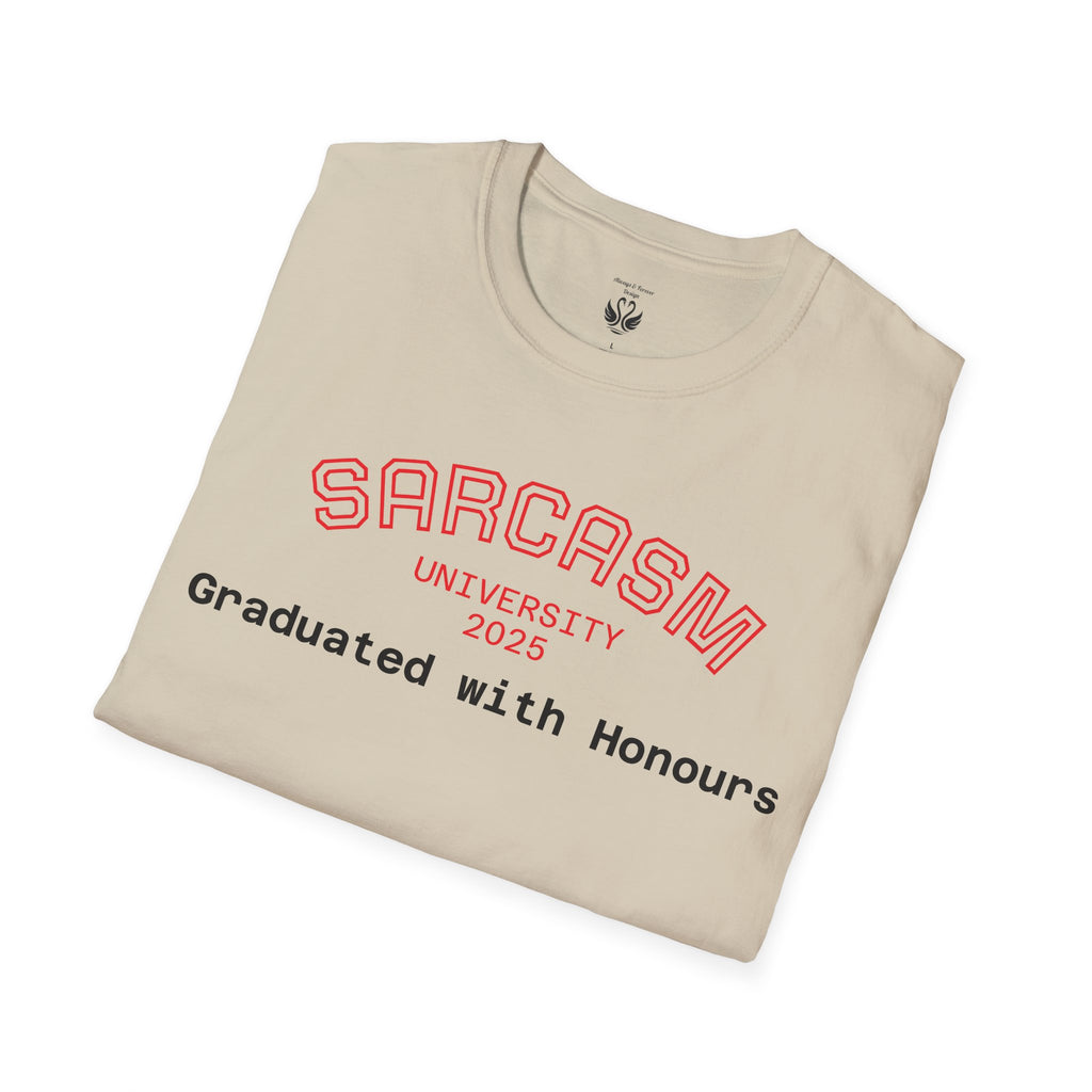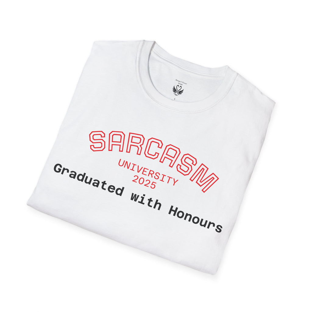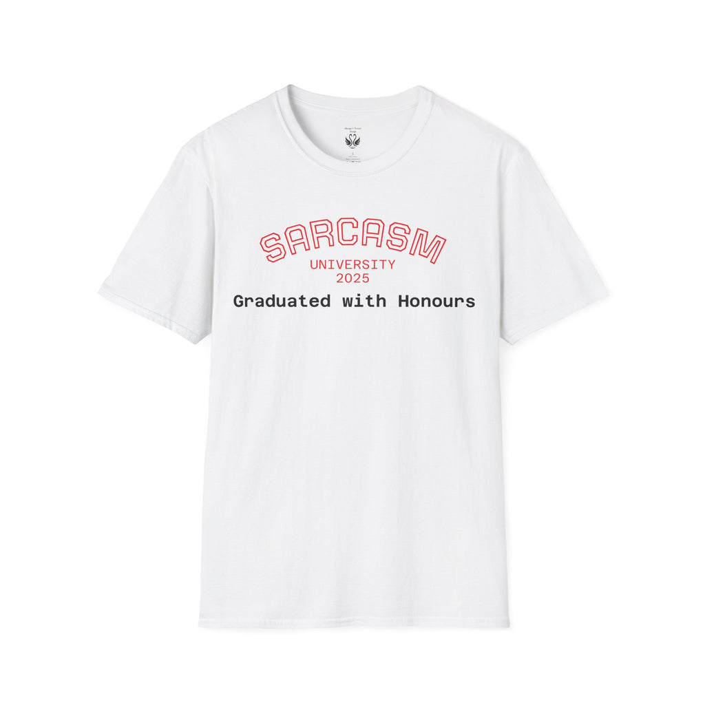 Introducing the perfect addition to your wardrobe: a stylish and comfortable unisex softstyle t-shirt. This shirt radiates a laid-back vibe, making it perfect for casual hangouts, relaxed workdays, or just lounging at home. Its clean, classic fit and versatile design ensure that it pairs well with any outfit, whether you're dressing it up for a special occasion or keeping it casual for a day out. Ideal for students, graduates, or anyone who appreciates a touch of humor in their style, this t-shirt is a great conversation starter. Perfect for gifts during celebrations like graduations, holidays, or as a whimsical treat for yourself, it makes every day feel a little more fun and expressive.