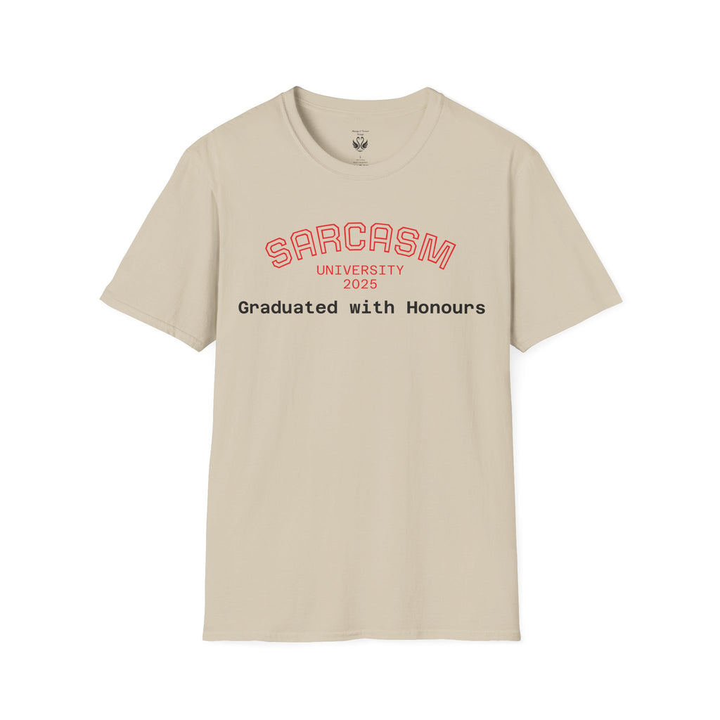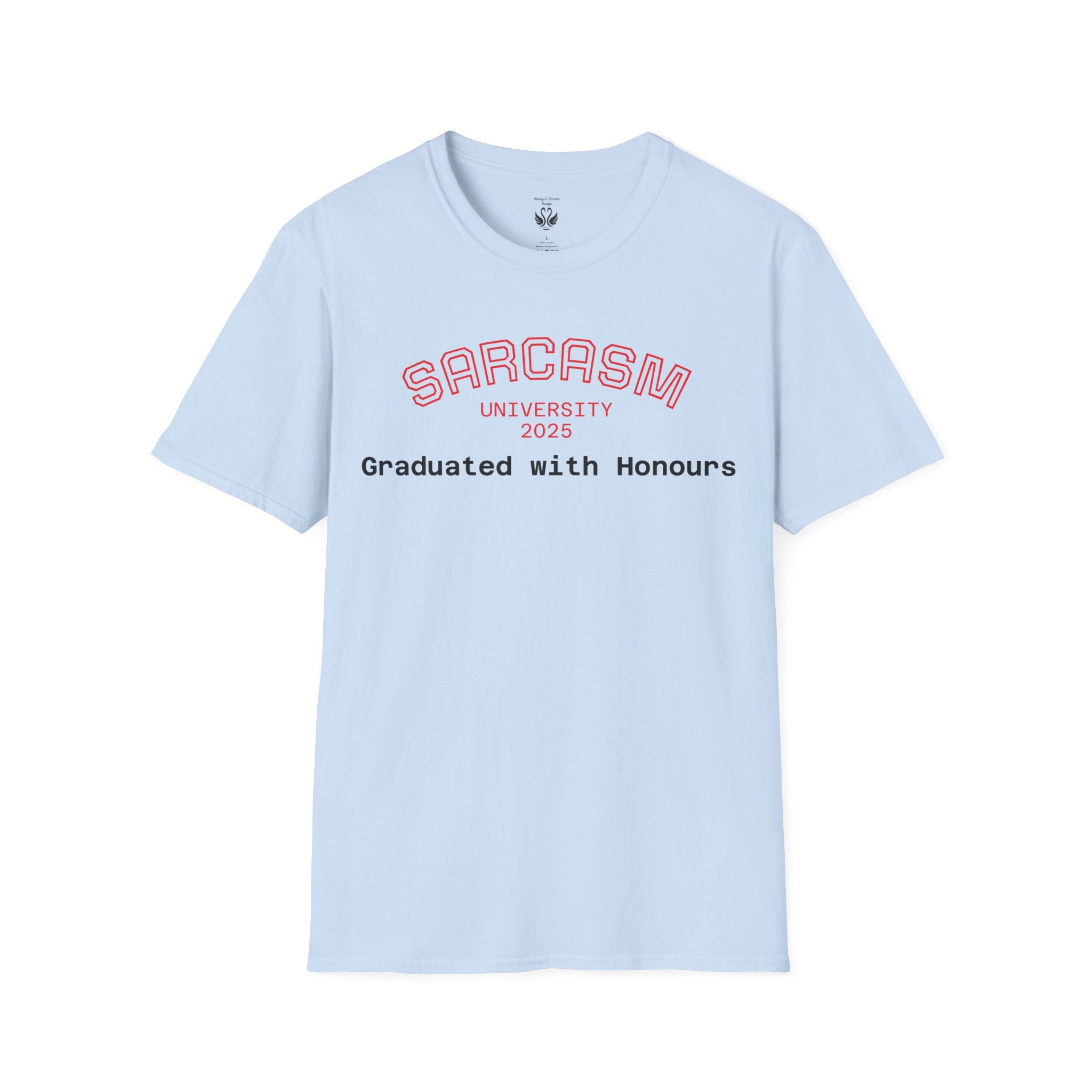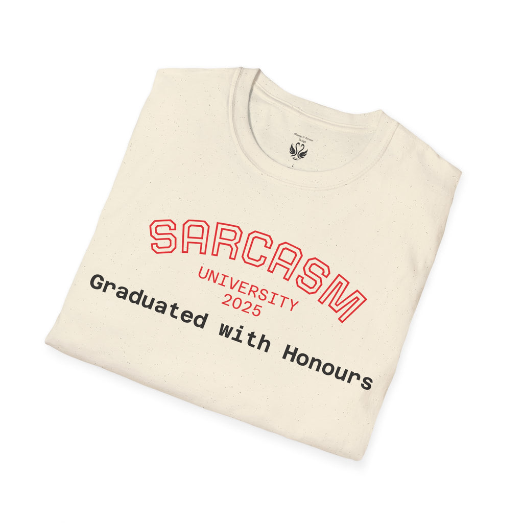 Introducing the perfect addition to your wardrobe: a stylish and comfortable unisex softstyle t-shirt. This shirt radiates a laid-back vibe, making it perfect for casual hangouts, relaxed workdays, or just lounging at home. Its clean, classic fit and versatile design ensure that it pairs well with any outfit, whether you're dressing it up for a special occasion or keeping it casual for a day out. Ideal for students, graduates, or anyone who appreciates a touch of humor in their style, this t-shirt is a great conversation starter. Perfect for gifts during celebrations like graduations, holidays, or as a whimsical treat for yourself, it makes every day feel a little more fun and expressive.