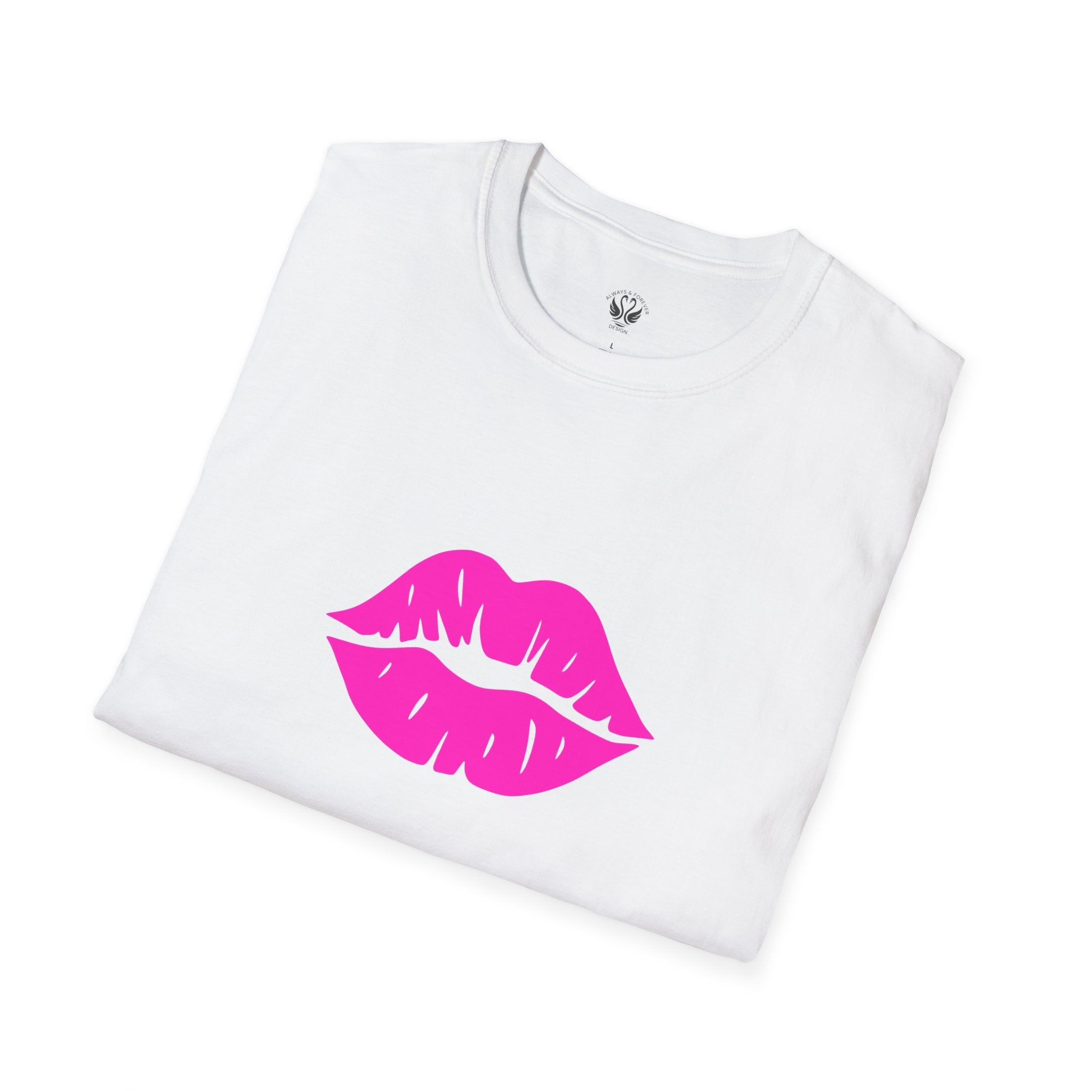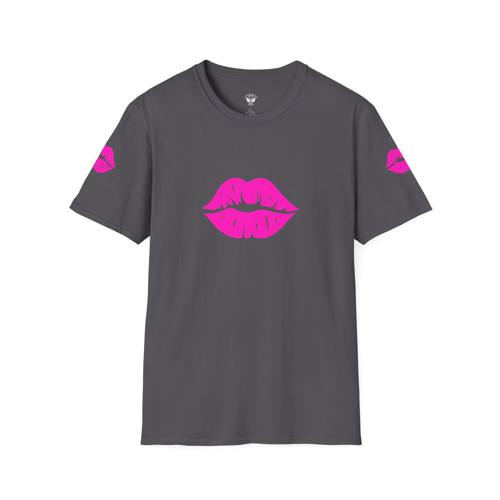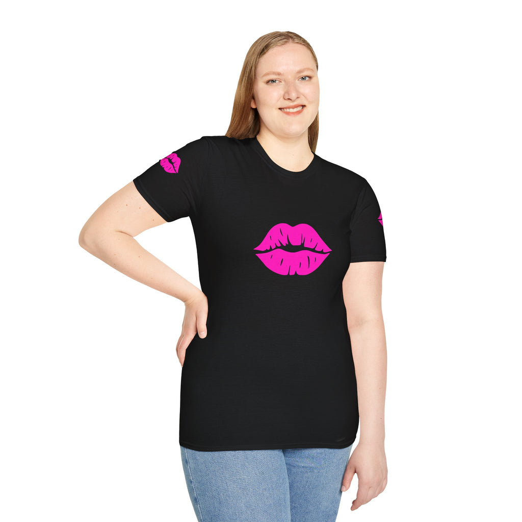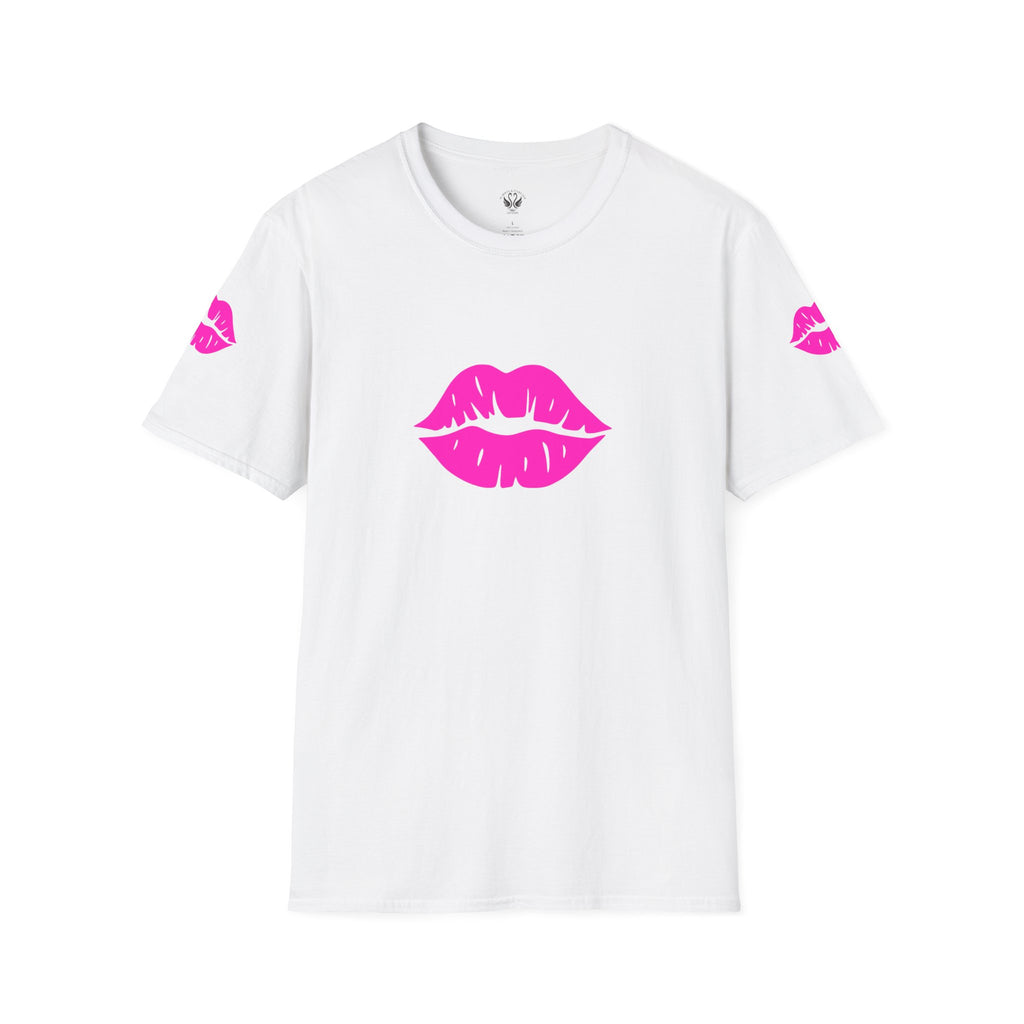 Introducing the perfect addition to your wardrobe: a Unisex Softstyle T-Shirt that radiates fun and flirty vibes. Made with 100% ring-spun cotton, this tee provides all-day comfort and a soft feel against your skin. Its eye-catching design features vibrant lips on the front and sleeves, making it a standout piece for casual outings or parties. Ideal for individuals who love to express themselves through fashion, this t-shirt is perfect for friends' gatherings, date nights, or even casual wear at home. Celebrate love, friendship, and joy on occasions like Valentine's Day, birthdays, or simply a night out with friends! This versatile t-shirt offers a classic fit, making it suitable for all body types and a stylish choice for any casual setting.