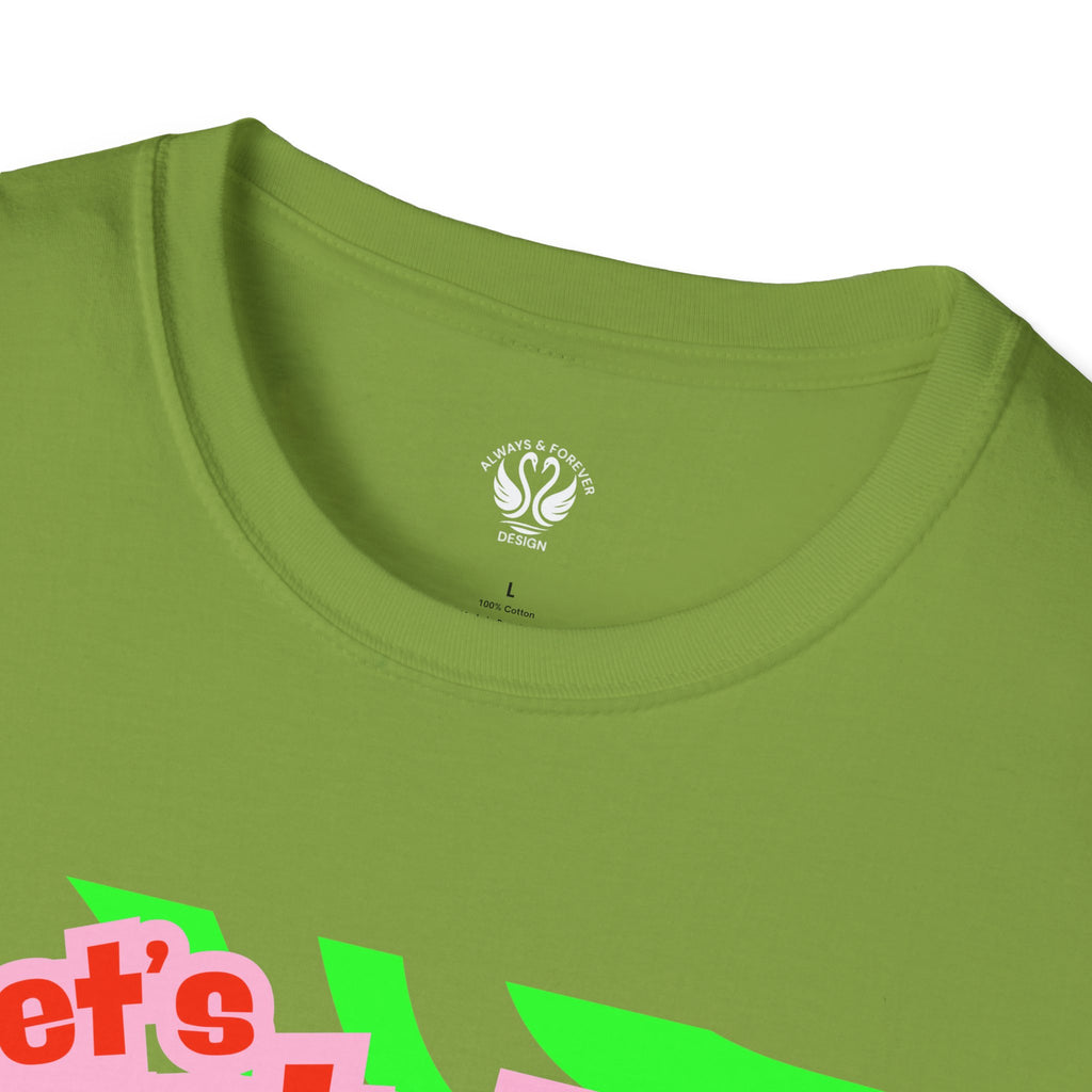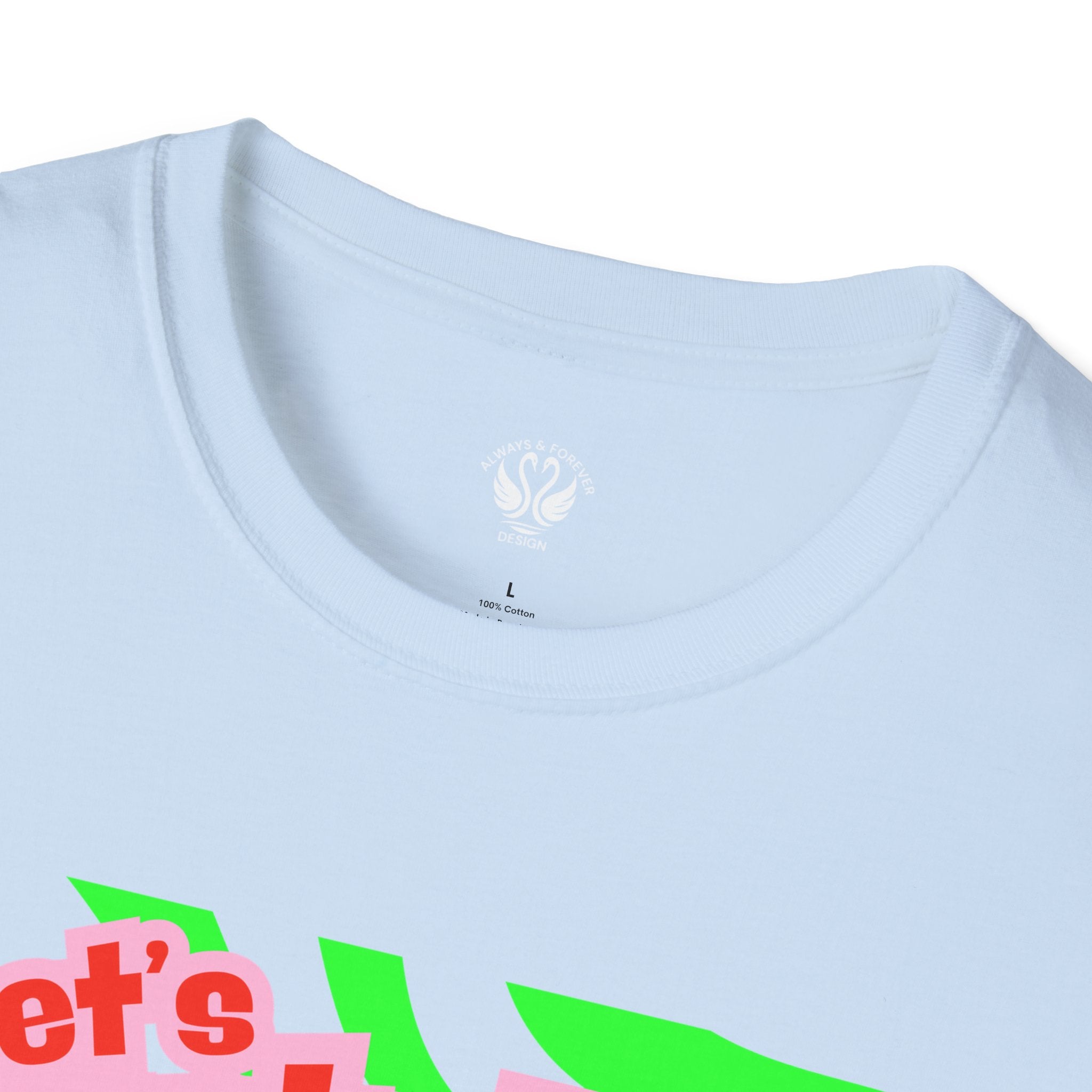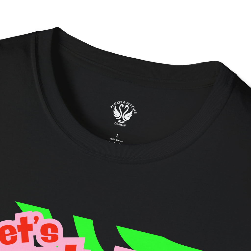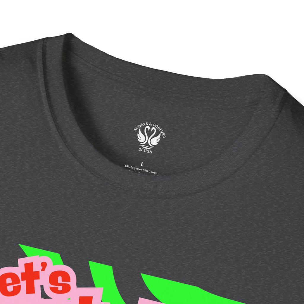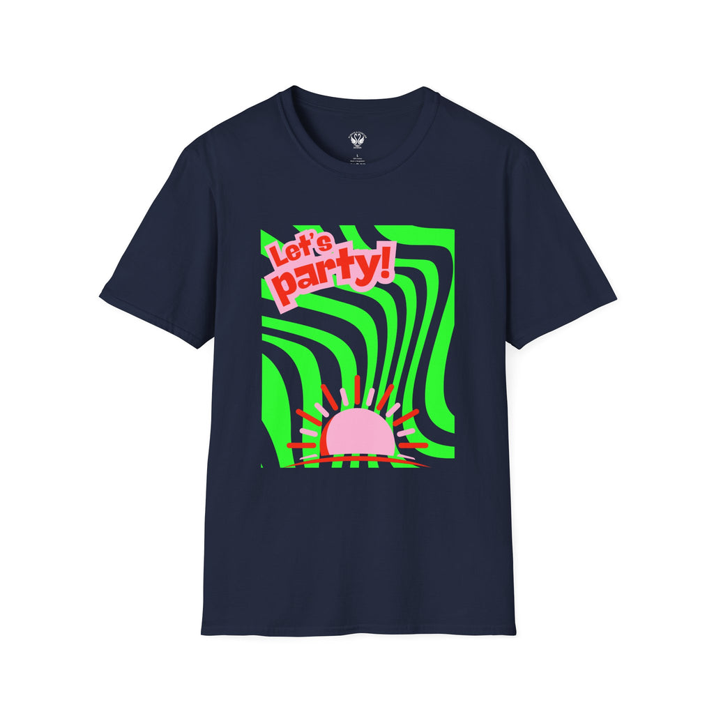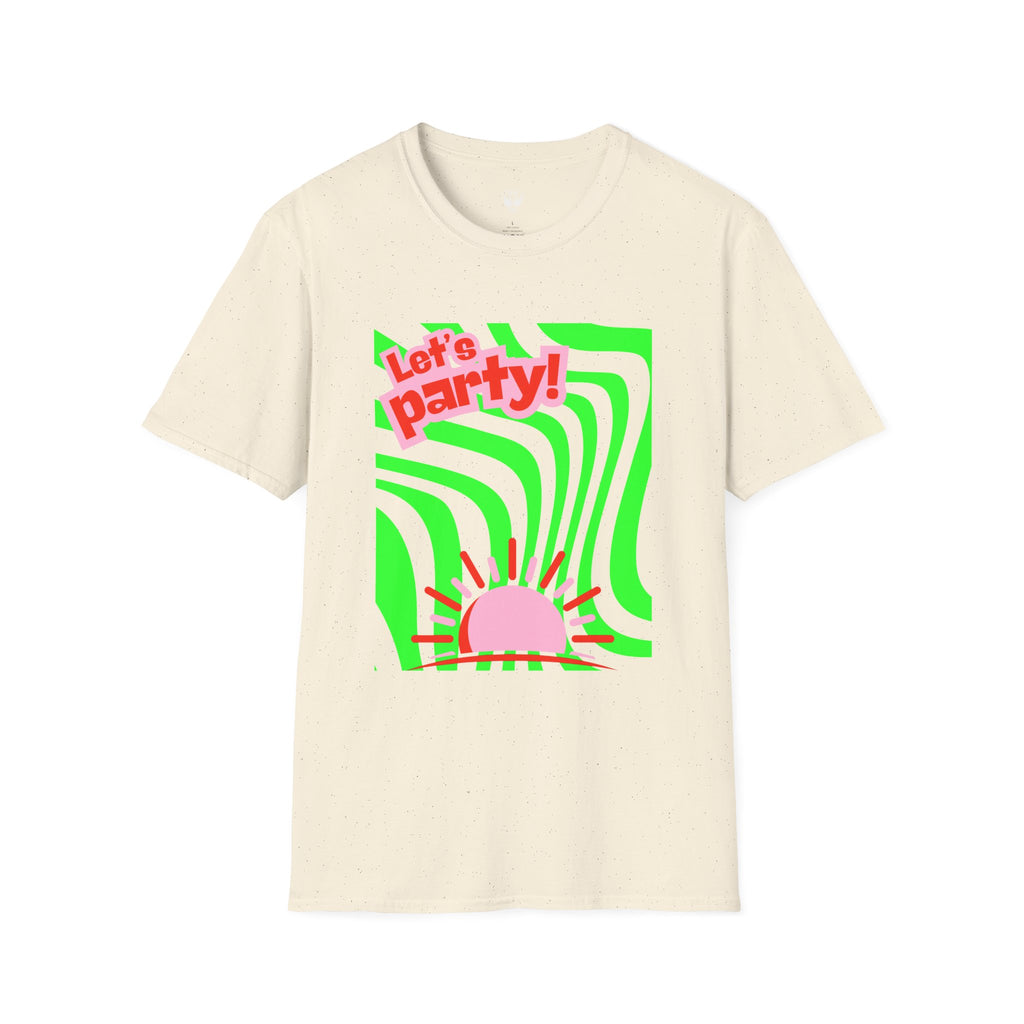 Introducing our vibrant Unisex Softstyle T-Shirt, the perfect addition to any casual wardrobe. This t-shirt exudes a fun, lively vibe, making it ideal for parties or gatherings with friends. Made from 100% ring-spun cotton, it provides exceptional comfort suitable for all-day wear during summer festivals, birthday celebrations, or lazy weekends at home. Its bold, playful design featuring a ‘Let’s party!’ theme brings a spark of joy and is relevant for those who love to celebrate life’s moments. Perfect for young adults and anyone who enjoys a casual yet stylish look, this t-shirt is bound to elevate your outfit and spread good vibes.