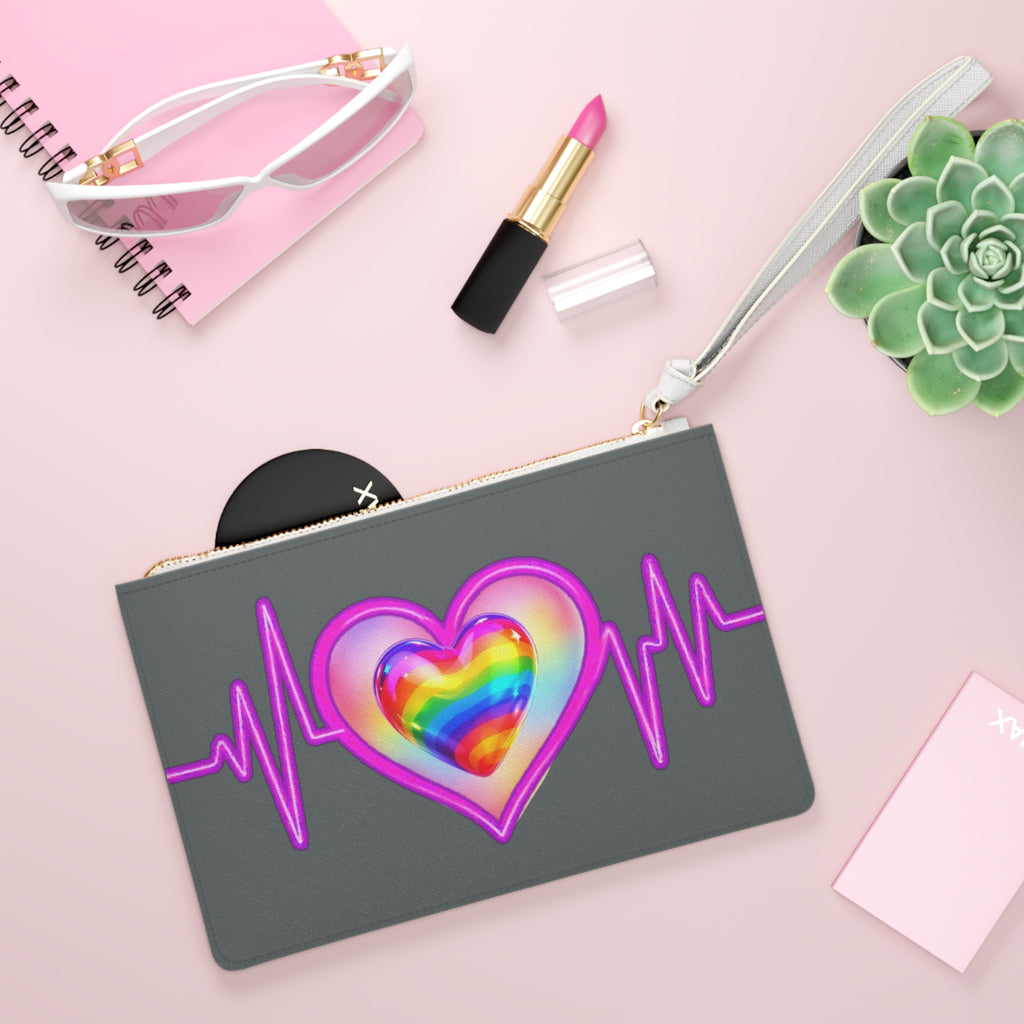 This trendy clutch bag is perfect for those who love to express their vibrant personality. With its eye-catching design featuring a colorful heart and heartbeat graphic, this accessory radiates positivity and joy. The sleek, compact size makes it ideal for nights out or casual gatherings, effortlessly fitting into your daily style. It’s an excellent choice for fashion-forward individuals, students, or anyone looking to add a pop of color to their ensemble. This clutch is perfect for birthdays, Pride celebrations, or special occasions where you want to stand out. Carry it as a statement piece or as a practical storage solution for your essentials, embodying both function and flair.