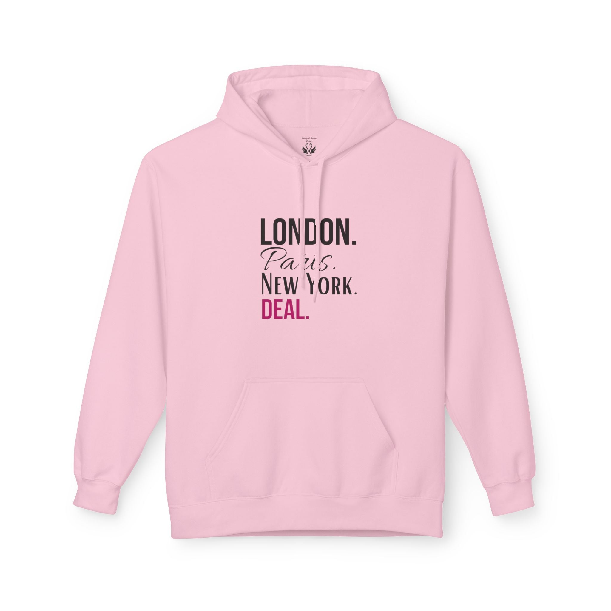 Embrace comfort and style with this soft, unisex midweight fleece hoodie. Perfect for lounging at home, running errands, or just enjoying a casual day out, it adds a cozy layer to any outfit. The classic fit and relaxed feel make it a versatile wardrobe staple, while the contemporary graphic design resonates with city lovers and trendsetters alike. Ideal for gifting during the fall and winter holidays, this hoodie is a thoughtful present for birthdays, anniversaries, or just because. Whether you're dressing down for a weekend getaway or layering up for a chilly evening, this hoodie ensures you remain both fashionable and warm. Perfect for urbanites, fashion enthusiasts, and anyone who appreciates a blend of comfort and contemporary style.