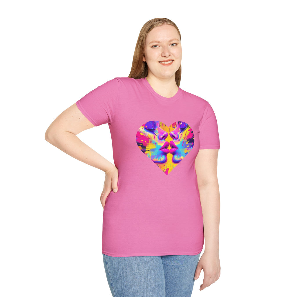 Experience comfort and style with this unisex softstyle t-shirt, perfect for everyday wear. The vibrant heart design brings a playful and artistic touch, making it a statement piece for any wardrobe. This t-shirt is ideal for casual outings, art events, or simply lounging at home. Celebrating love, friendship, or creative expression, it’s great for holidays like Valentine’s Day, artsy occasions, or as a thoughtful gift for loved ones. Suitable for adults, it ensures you feel special while promoting an eco-conscious message with ethically sourced materials.